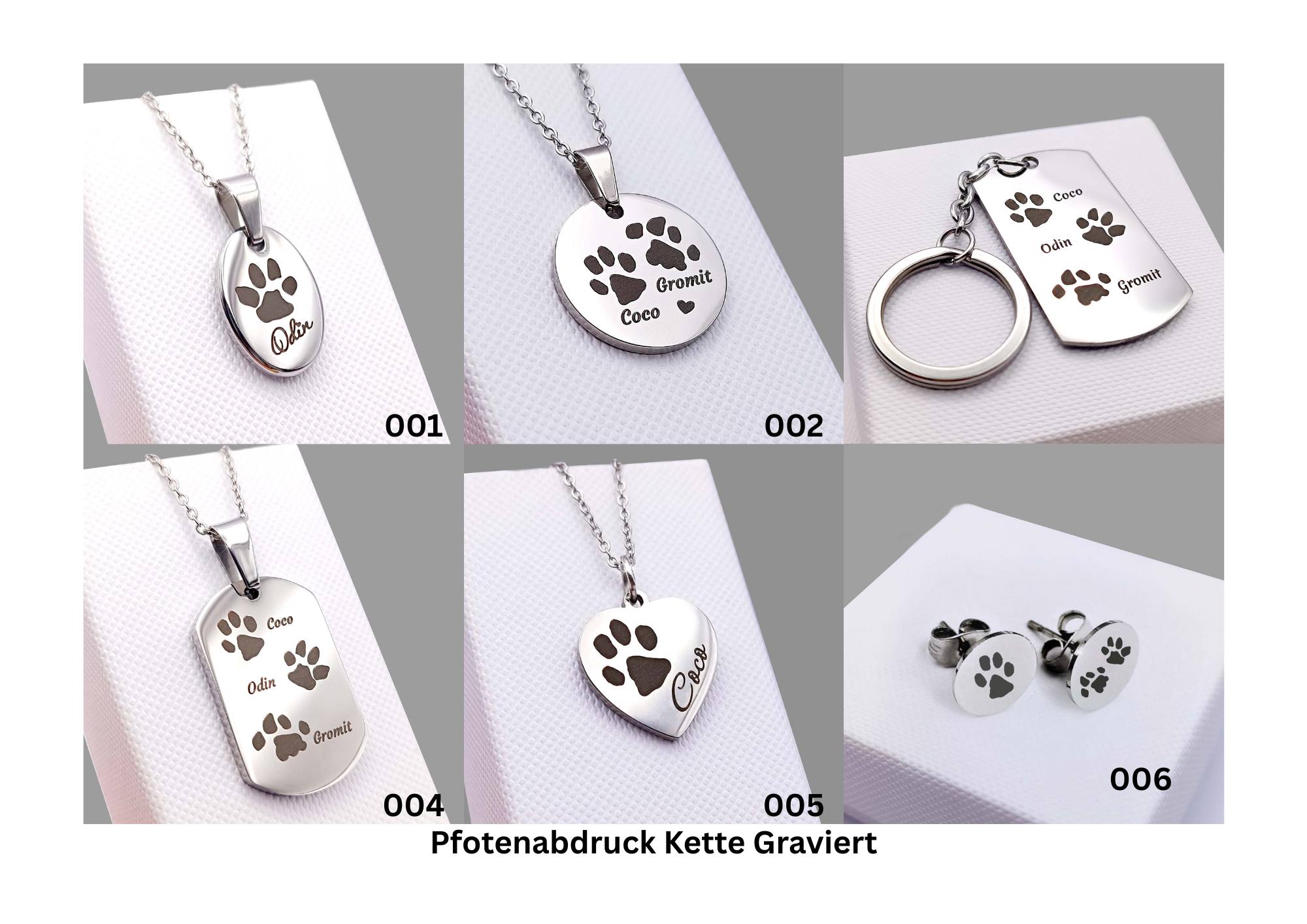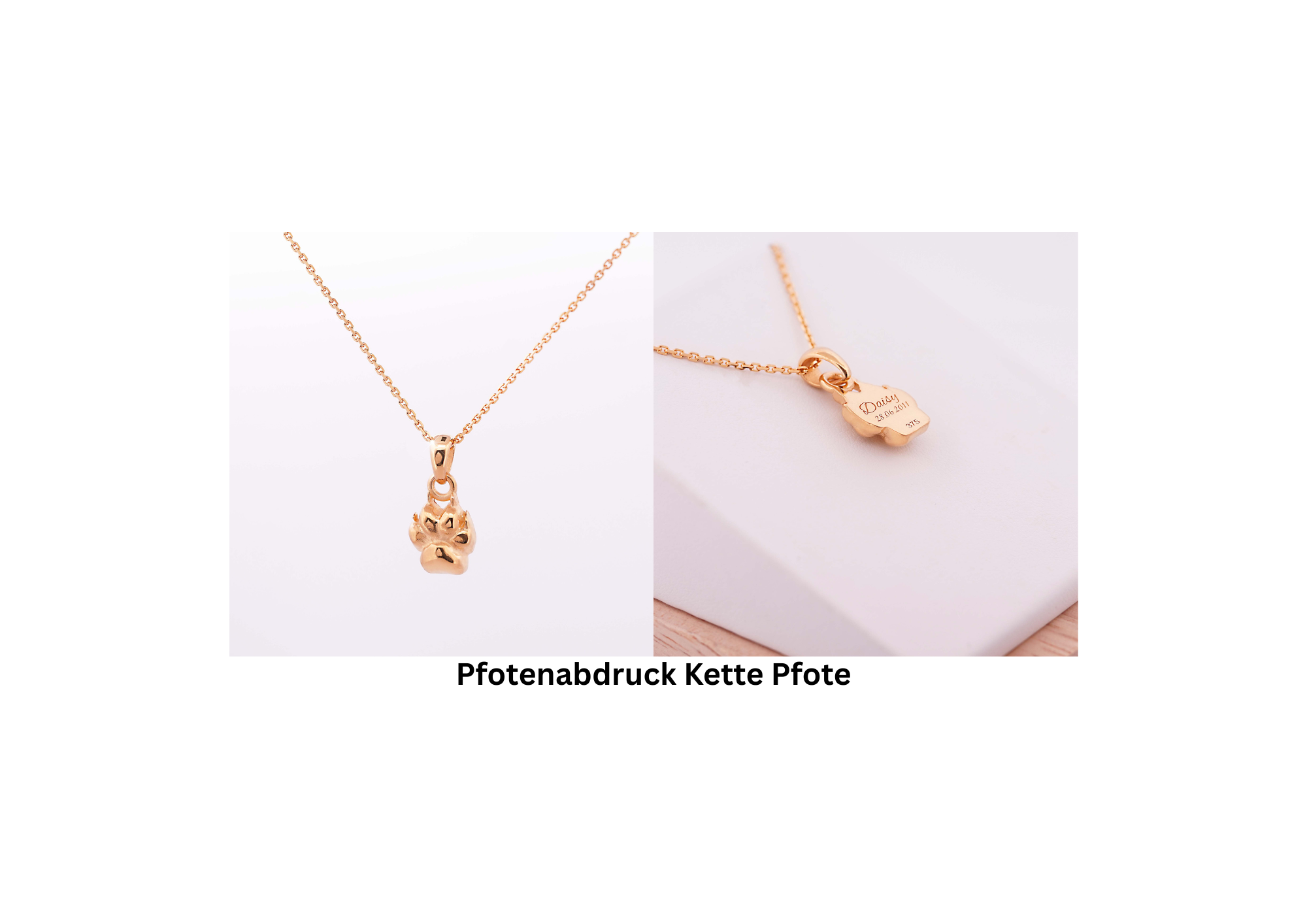Pfotenabdruck-Kette mit 3D Namen aus echtem Silber erhältlich auch in Roségold oder Vergoldet