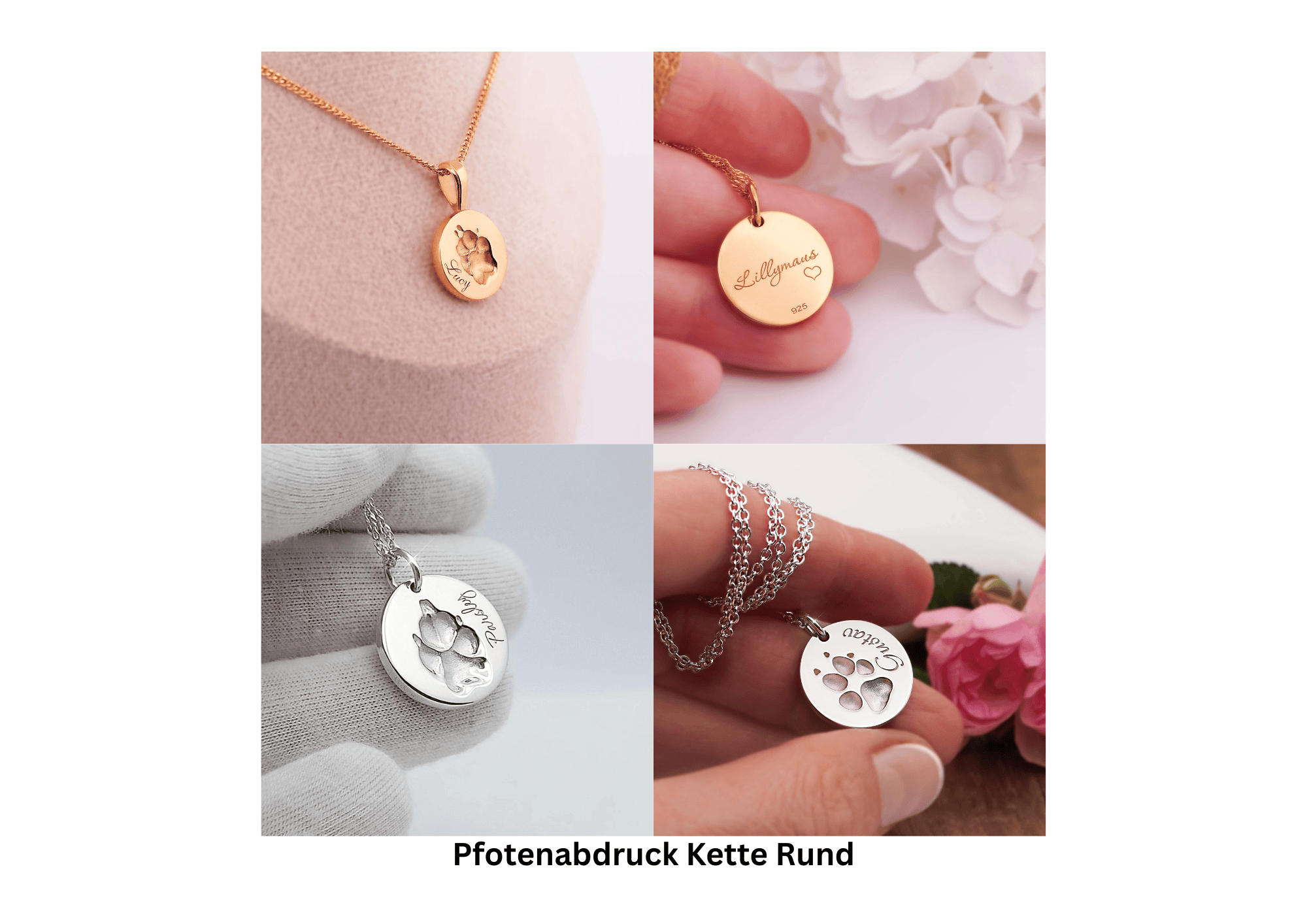 Pfotenabdruck-Kette mit dem Original Pfoten Abdruck aus echtem Silber erhältlich auch in Roségold oder Vergoldet (Rund)