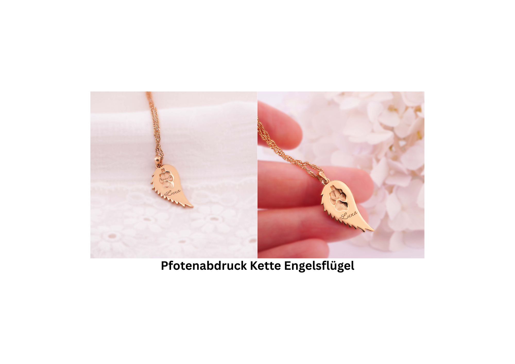 Pfotenabdruck-Kette mit dem Original Pfoten Abdruck aus echtem Silber erhältlich auch in Roségold oder Vergoldet (Engelsflügel)