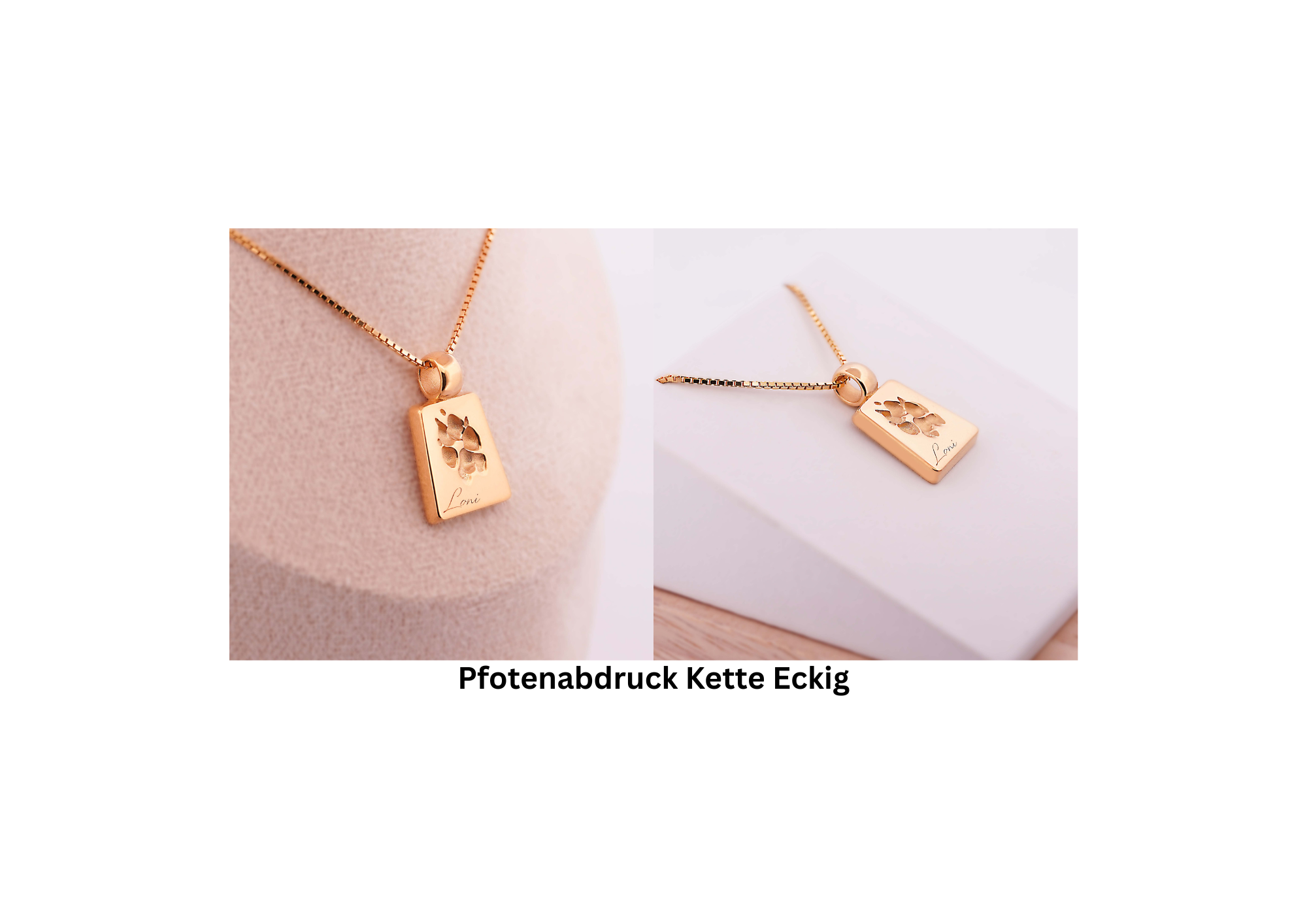 Pfotenabdruck-Kette mit dem Original Pfoten Abdruck aus echtem Silber erhältlich auch in Roségold oder Vergoldet (Eckig)